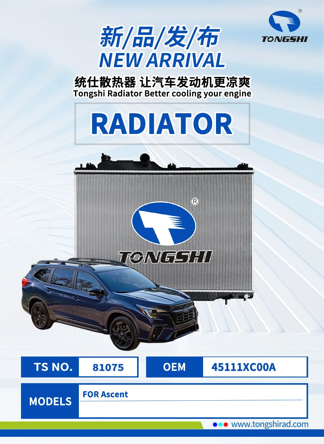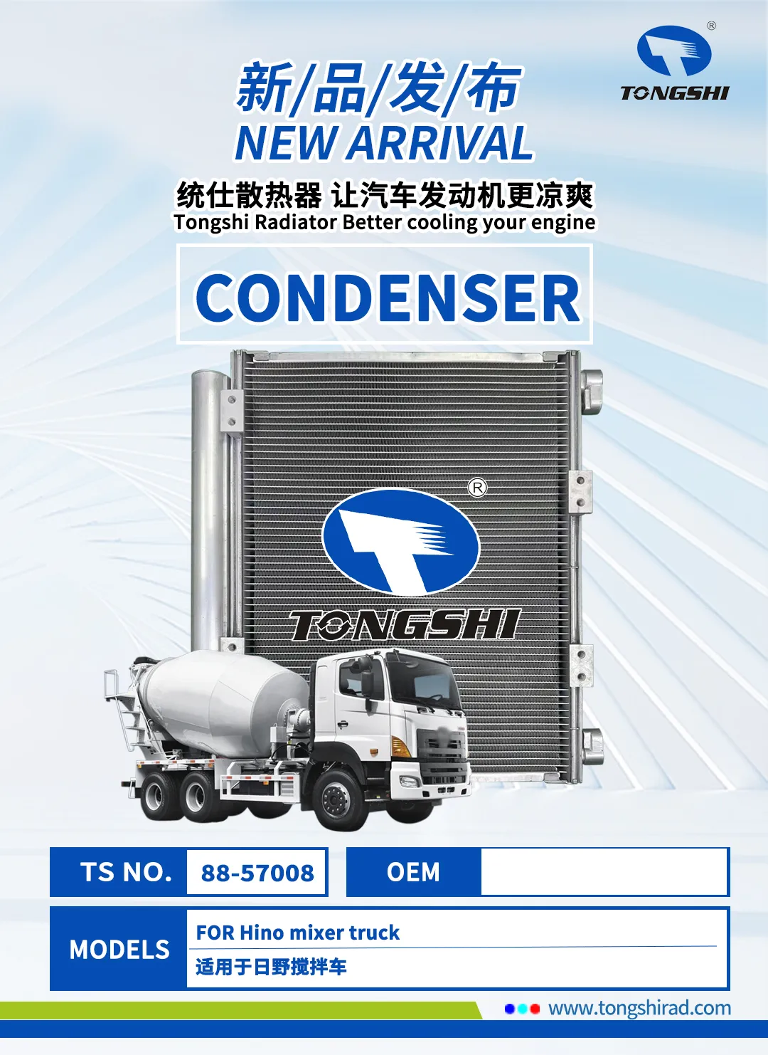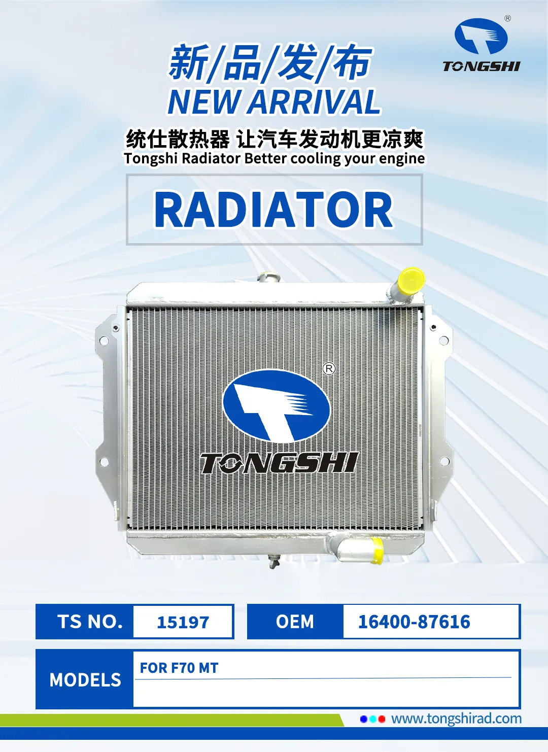 In this golden autumn of October, Xin Tongshi Group proudly launches a series of products including radiators, condensers, intercoolers, oil coolers, etc! The newly released products not only cover various car models such as automobiles, construction vehicles, and trucks, but also meet your cooling needs for different car models with excellent performance and customized services.