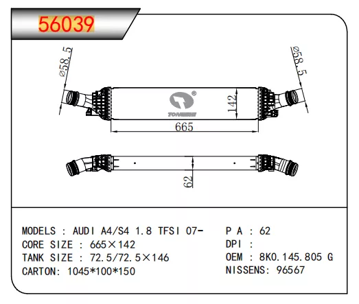 | TS NO. | MODEL | OEM | DPI | NISSENS | CORE SIZE | TANK SIZE |