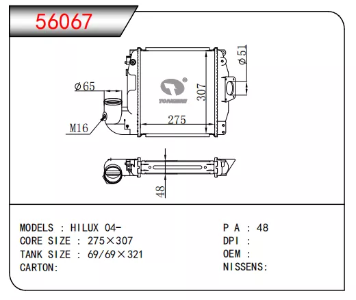 | TS NO. | MODEL | OEM | DPI | NISSENS | CORE SIZE | TANK SIZE |