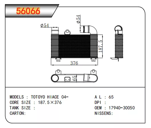 | TS NO. | MODEL | OEM | DPI | NISSENS | CORE SIZE | TANK SIZE |
