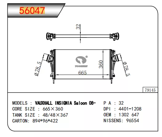 | TS NO. | MODEL | OEM | DPI | NISSENS | CORE SIZE | TANK SIZE |
