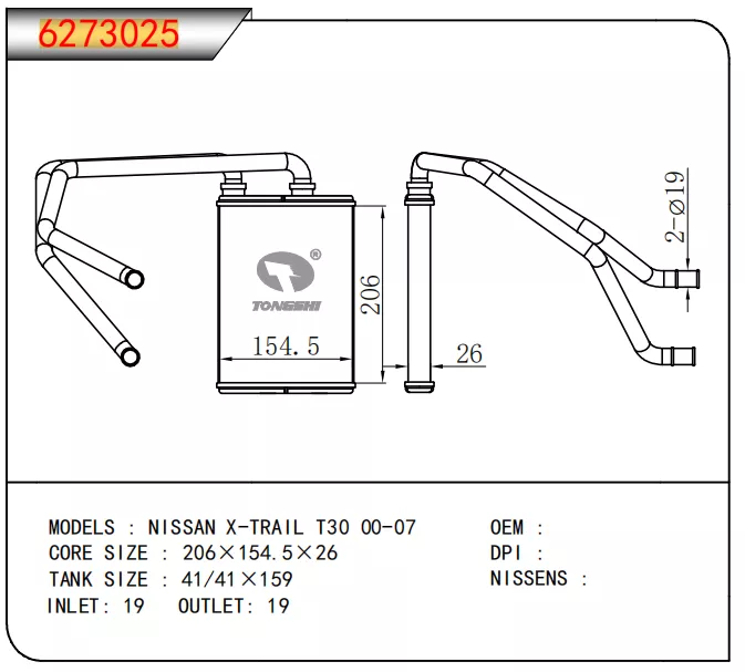 | TS NO. | MODEL | OEM | DPI | NISSENS | CORE SIZE |